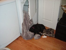 Coco's sense of comfort - freshly dried blankets out of the machine!