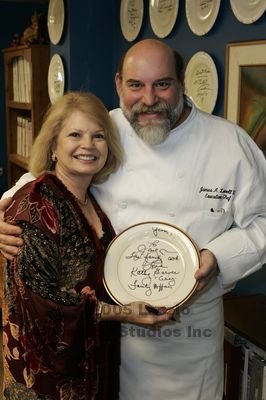 Kathy Garver and Jay Lovell at Lovell's restaurant - Kathy signed a plate to be