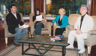 Kathy tapes a show with host Richard to broadcast on their 9:00 evening show.