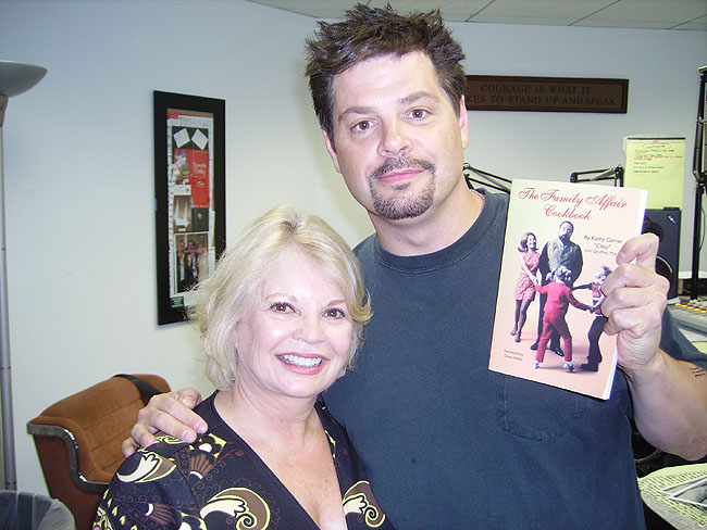 Kathy and Mancow with Kathy's book The Family Affair Cookbook