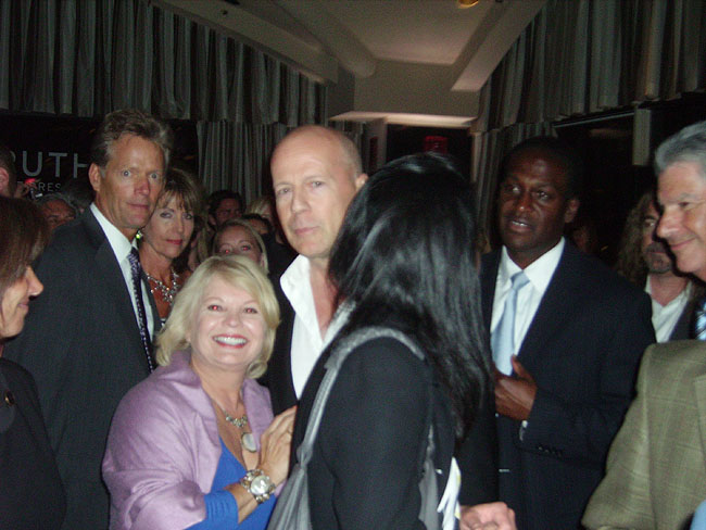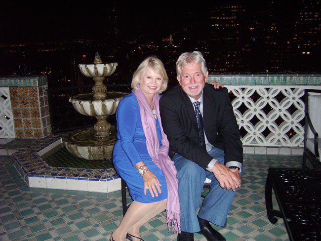 Kathy on the terrace of the Fairmont with brother Lance, during the launch of Sobieski