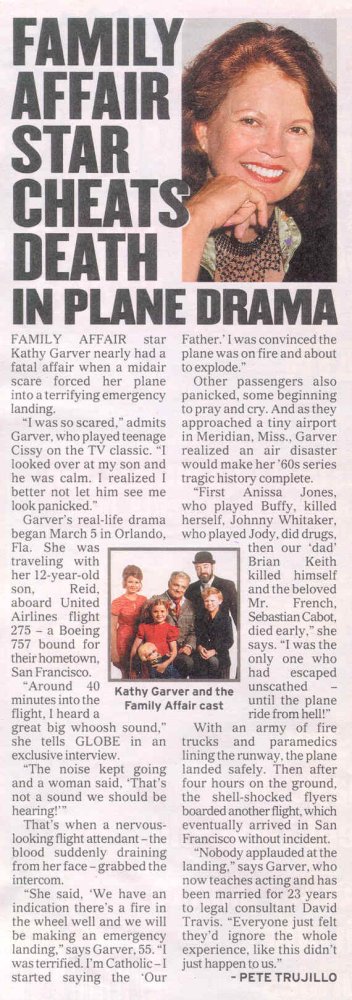 Pete Trujillo, the author, relates how Kathy barely escaped a plane crash and