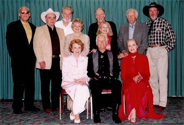 Kathy behind Ty Hardin who is flanked by Joan Leslie and Ann Jeffreys Sterling at
