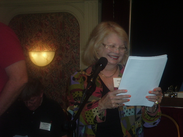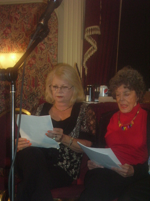 Kathy rehearsing for her re-creations at Friends of Old Time Radio