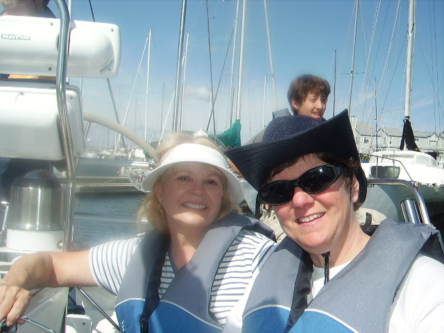 Kathy has a fun day of sailing on the Bay with friends Cindy and Bob Peckerak