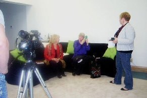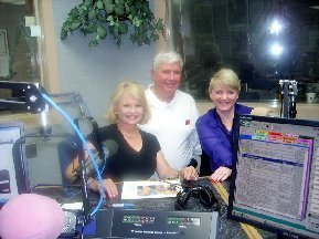 Kathy with Alison Arngrim and host Laurie preparing to do LocalVision TV interview