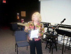 Kathy speaking at the Edgerton Tri County Center, WI on the assemblage of