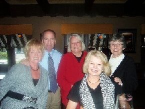Kathy is greeted by Edgerton Book and Film Festival committee members Cathe, Dennis, Diane and Barbara.